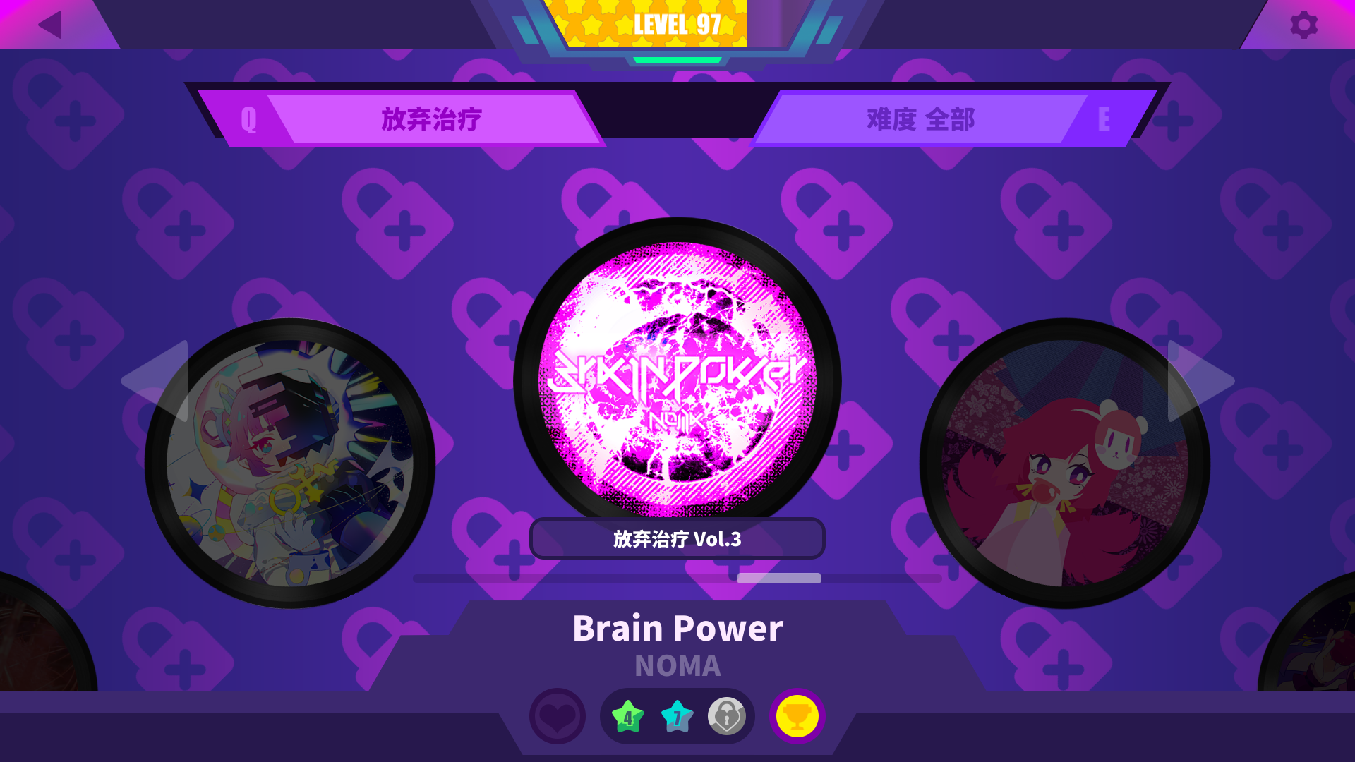 其中我最喜欢brainpower ,里面包含了打工人和一些的稀有皮肤已解锁,音乐也都解锁了,具体解锁到什么程度我不清楚还没玩完,我有买正版的,玩破解版纯粹想体验brainpower和试试打工人这个角色
