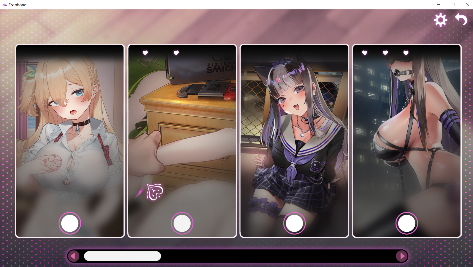 这是一款颇具创意的“找不同”为玩法的美少女互动游戏。通过使用鼠标,找出游戏中“手机”与画面中的不同,触发与与美少女的互动。(简而言之就是GAL式的找不同)---我已经帮助各位把游戏全通,所以你可以使用自由模式进行游玩