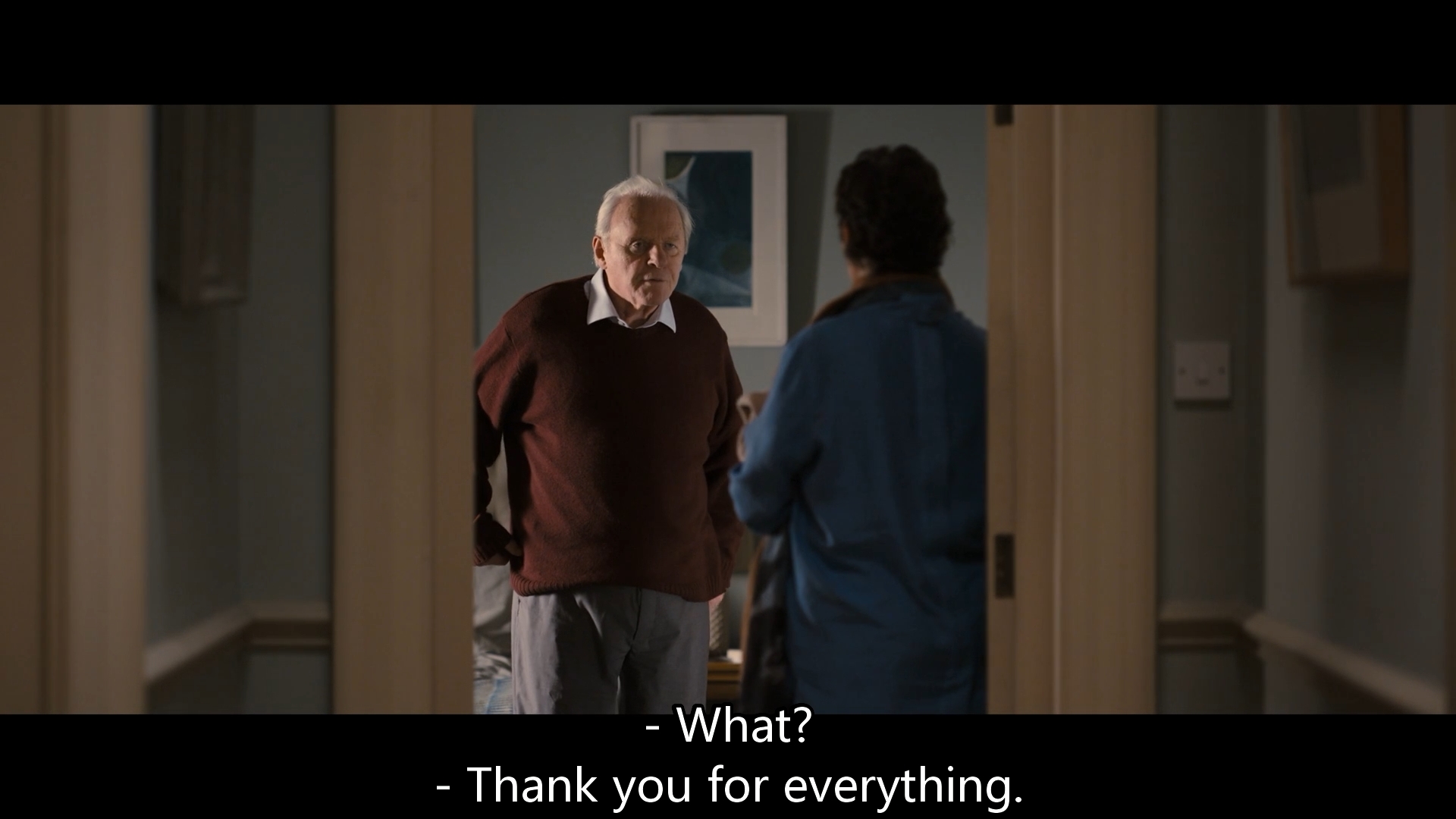 简介: 影片以重复加碎片式的感官叙事手法,讲述了年迈且身患疾病的安东尼(安东尼·霍普金斯 Anthony Hopkins 饰)正在面临一项艰难的人生选择——是搬到养老院还是接受女儿寻找的新护工。在这个过程中,安东尼发现自己仿佛进入了一场奇怪的时空之旅,错乱的记忆和时间线交织出一段段匪夷所思的故事,而一个个陌生又熟悉的人也让他陷入迷茫。 影片根据法国小说家兼剧作家佛罗莱恩·泽勒的舞台剧《父亲》改编。