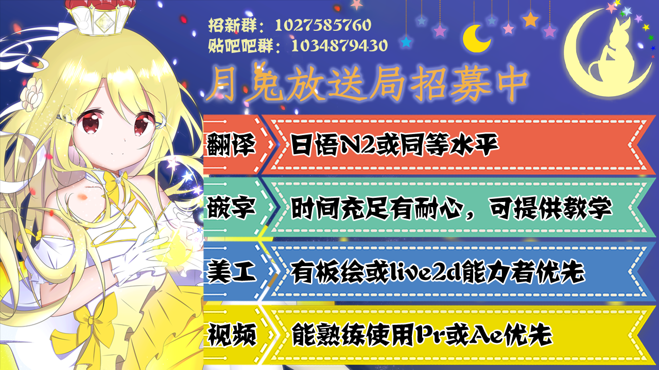 最后,感谢大家的支持,请大家期待新组(在正版合同到期前我们暂时不能正式宣告成立,但是合同也快到期了),同时欢迎各位加入我们的大家庭!招新群1027585760,具体要求见图: