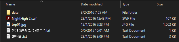 转区日本运行 解压后NightHigh 2.swf启动 关防毒软件or把被侦测的档案加入白名单 flash player