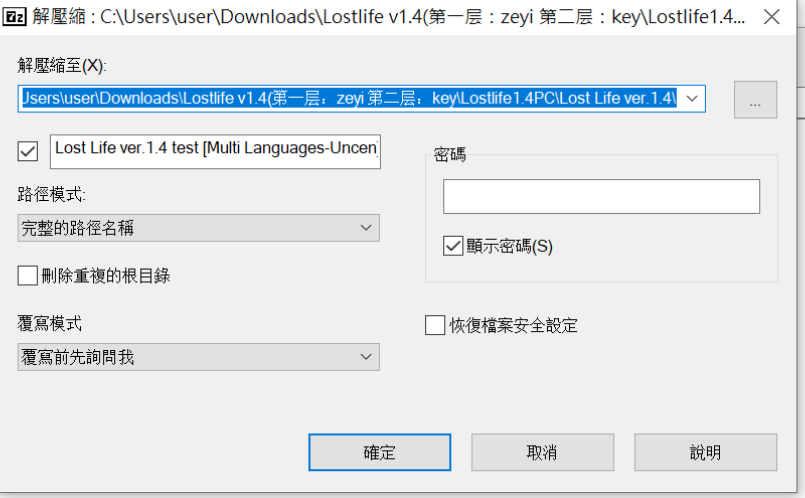 Lost Life又更新了,但这次不能继承上次进度有点可惜,但黑屏问题应该没了.毒盤這次設定了两个,一个解压比较复杂防又再线解压,一个只用解压一次.同样有OD,秒传,只要解压一次.