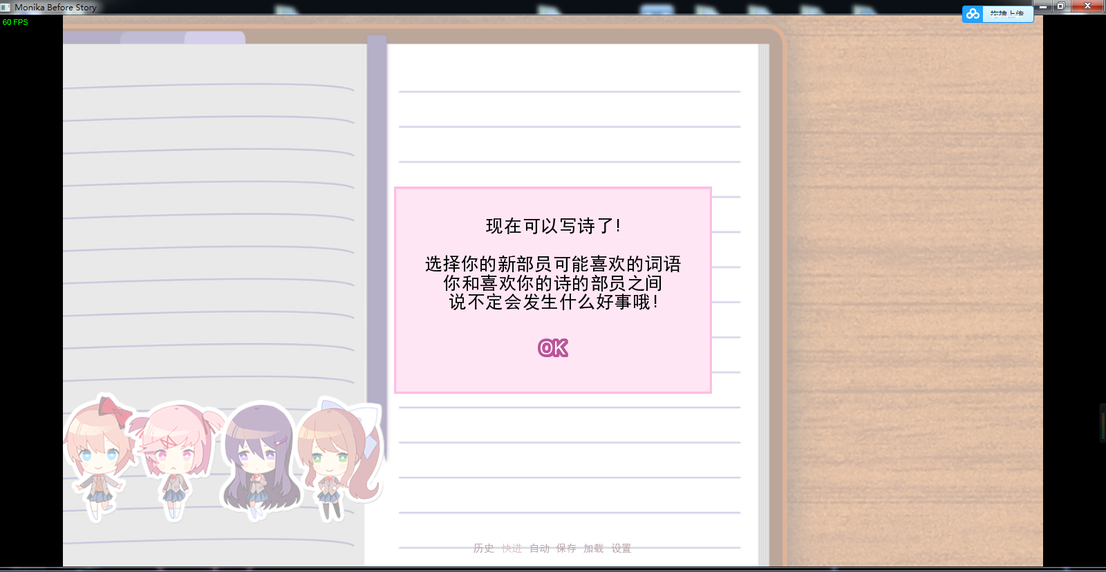下面放游戏预览,玩法和原作其实差不多,但是这次四个女孩都可以攻略了(写诗时monika的关键词有点搞不懂....)