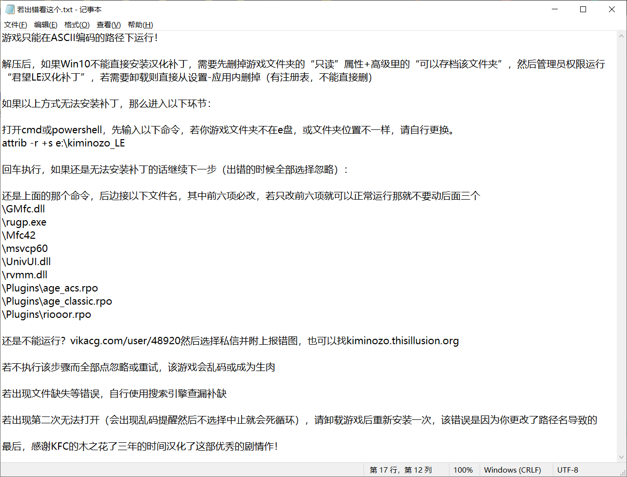 该资源为DVD日版+汉化补丁,由于引擎避免不了的注册表运行,所以该游戏不存在硬盘直装版,需要自行使用管理员权限来安装补丁。如果在安装过程中遇到了一些报错,本人把能够收集到的原因进行分析并写出了解决方案