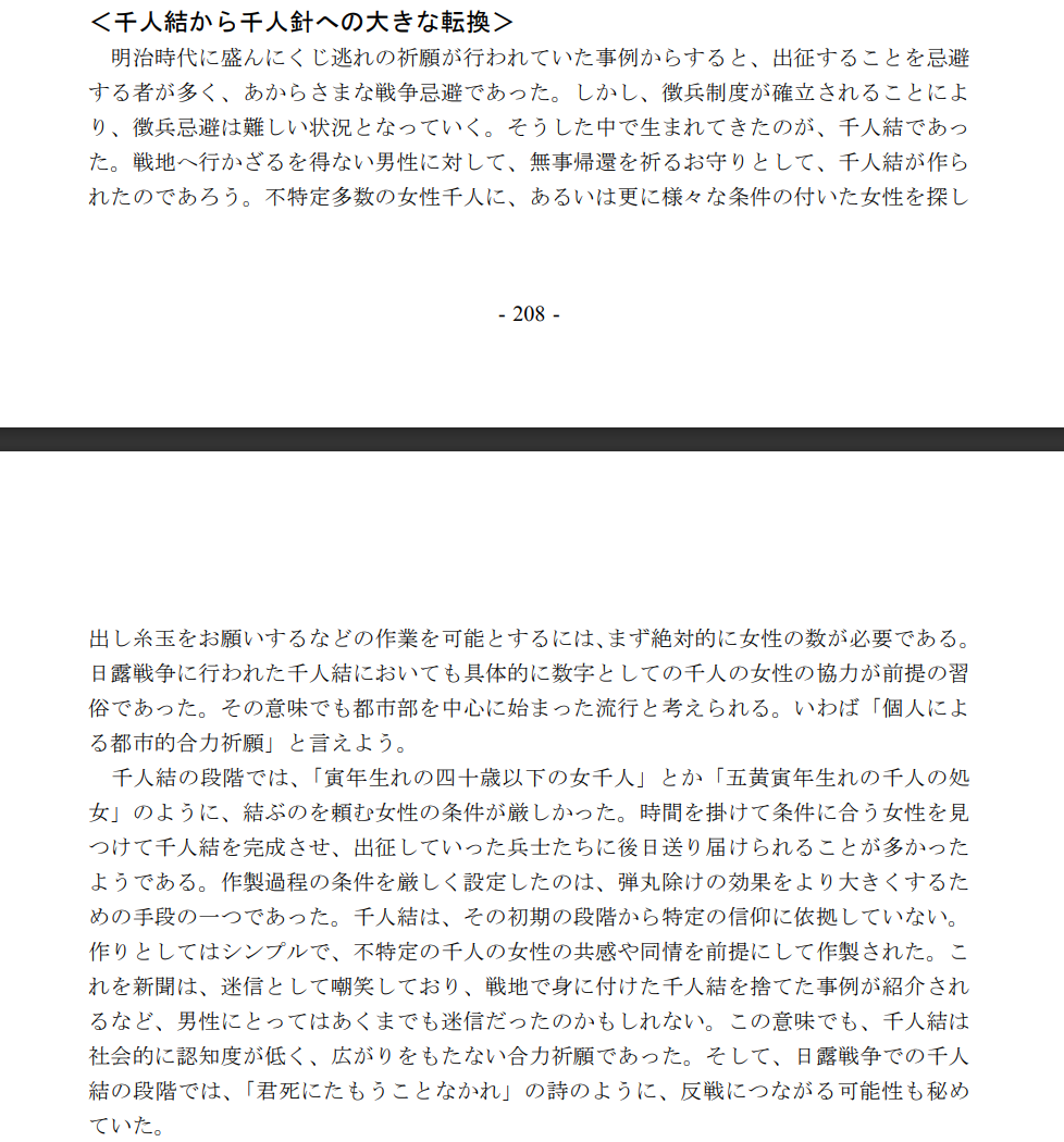 战争中与避难信仰有关的民俗学研究 ~ 千人针习俗